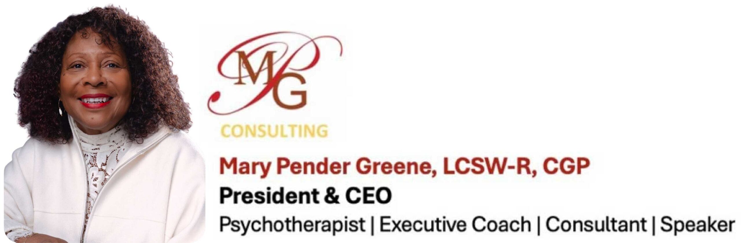 As President & CEO of MPG Consulting, Mary helps organizations design cultures that prioritize health, wellness, and resilience. She equips leaders across industries with strategies to address burnout and the hidden costs of high-pressure careers, guiding them toward recovery, balance, and sustainable success. The MPGC multiracial team of 90+ consultants specializes in providing innovative and customized team building, leadership, and professional development tools for leaders at every level of an organization. Our services are designed to meet the distinct needs of C‑Suite leaders, executives, leadership teams and boards. MPGC’s approach is centered on dignity, accountability, and compassion that encourages courageous conversations and builds trust. We help organizations bridge differences, lead diverse teams with confidence, and cultivate cultures where inclusion and effectiveness thrive.